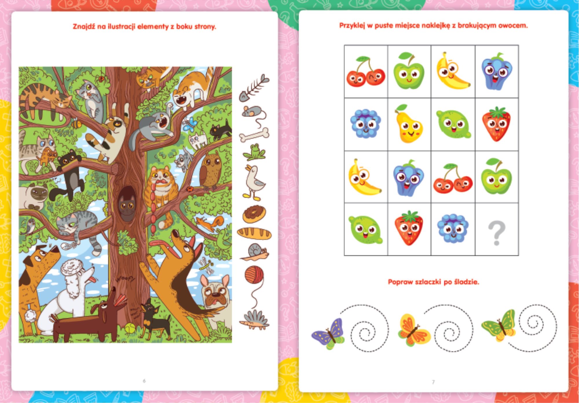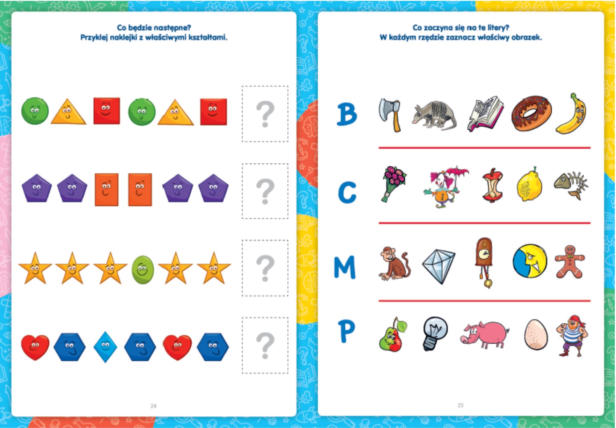 Książka z zadaniami dla dzieci, która rozwija umiejętności potrzebne do nauki w szkole. Kolorowe zadania, łamigłówki, wykreślanki powodują, że dziecko nie zazna nudy, a przy zabawie będzie się rozwijało.