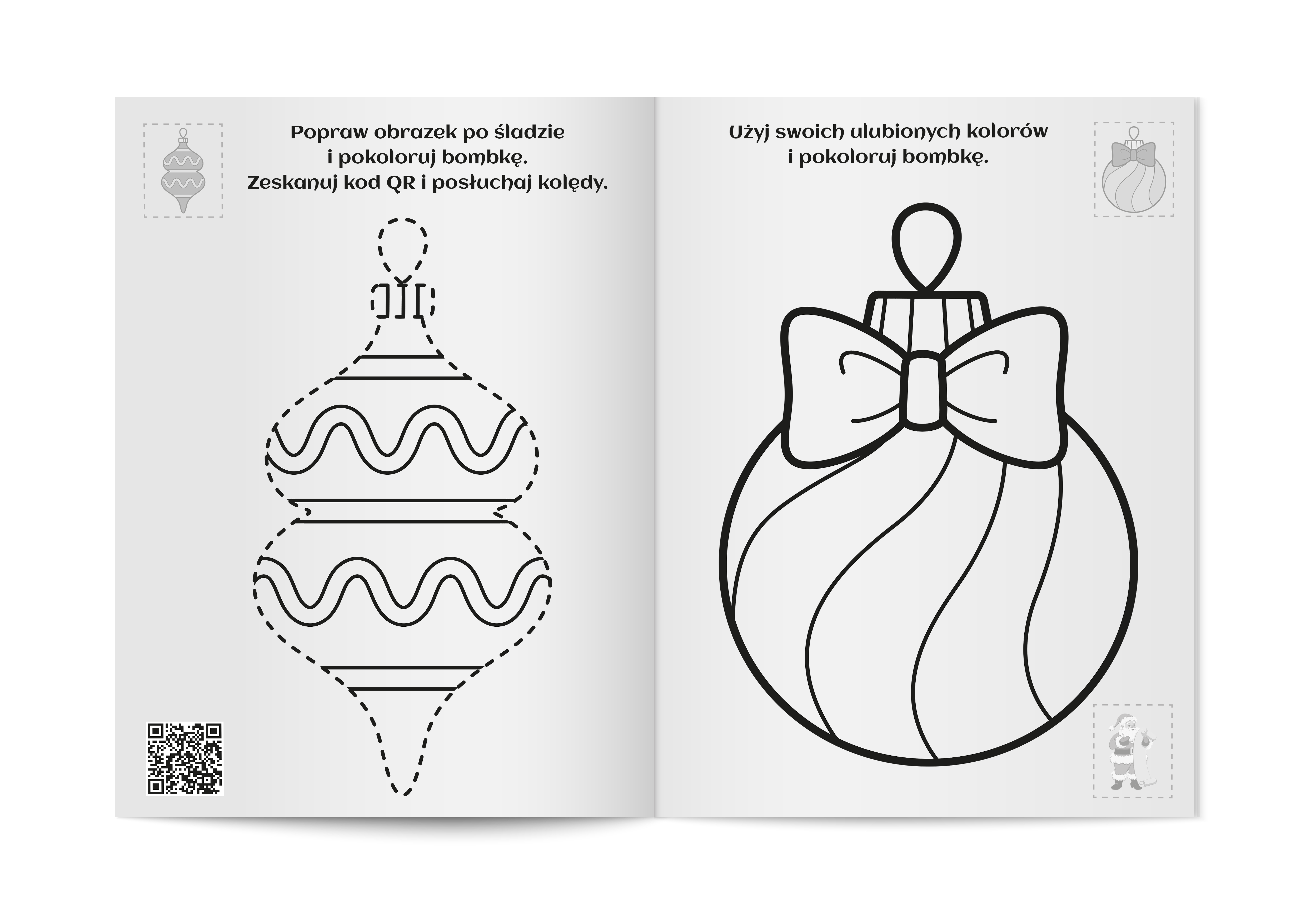 Kolorowanki bożonarodzeniowe A4 z kodem QR to świetny sposób na połączenie tradycyjnej zabawy z nowoczesną technologią! Taka kolorowanka może zawierać piękne, świąteczne motywy, a dzięki kodom QR dzieci mogą odtwarzać kolędy związane z Bożym Narodzeniem.