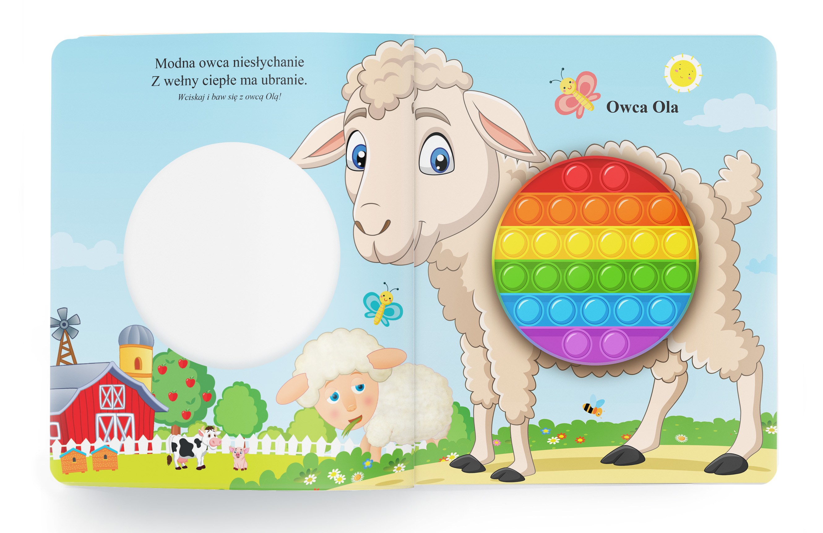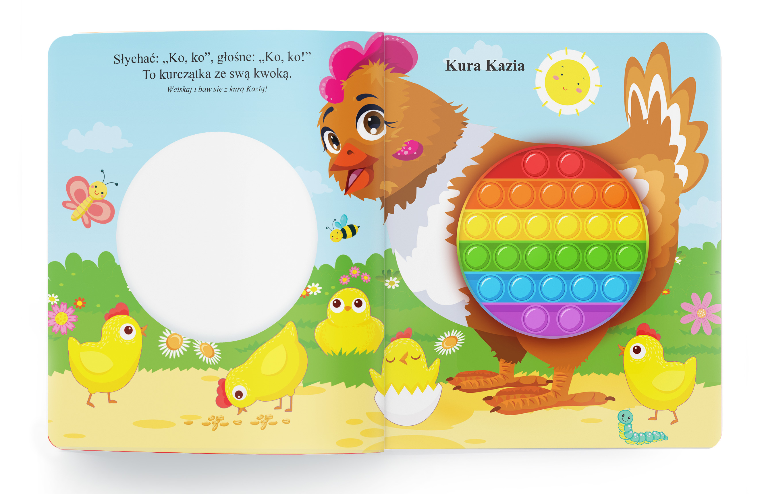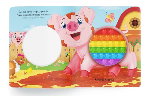 Książka z elementami dotykowymi, sensoryczna typu pop-it dzięki, której dziecko doświadczy uczucia odprężenia, ponieważ poprzez wciskanie bąbelków może ono odreagować stres i wyciszyć emocje. Książki te są świetną zabawą dla każdego malucha, ale także nieocenione jako pomoc  w pracy z dziećmi z różnymi problemami emocjonalnymi. Zabawa z książeczkami pop-it przypomina zabawę folią bąbelkową, a piękne ilustracje oraz ciekawe wiersze przyciągną uwagę każdego dziecka.